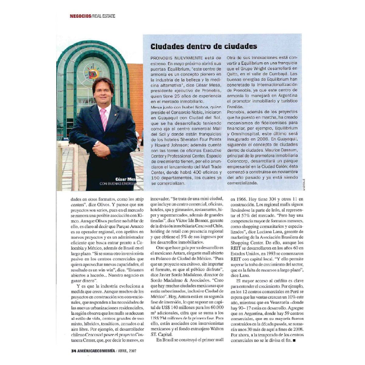 Soy un empresario con mas de 40 años de experiencia exitosa y formación comprobada en Colombia y Ecuador con desarrollo inmobiliario de carácter comercial, turísticos hospitalario y residencial.